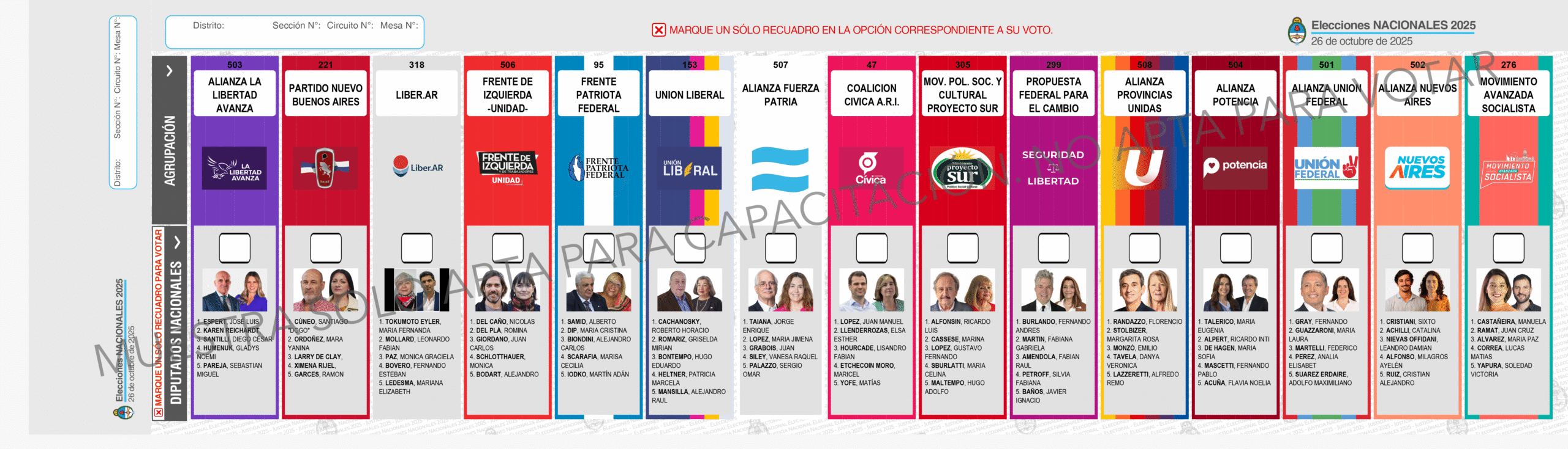 En boleta única impresa a cuatro tintas tendrá las columnas de cada partido político (nombre, logo, foto de los candidatos, número de lista) y las filas con las categorías en disputa.